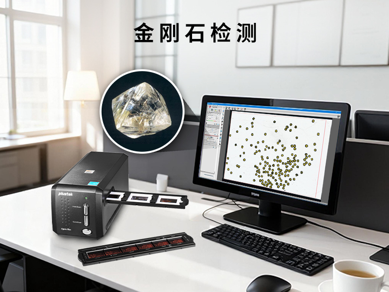 “邪修”方案:将金刚石或其他人工宝石进行取样(或小型原石)置于扫描仪上。扫描仪均匀、高亮度的透射光源,能够像“照妖镜”一样,让材料内部的杂质、气泡和应力纹路无处遁形,输出清晰的图像,依据检测定义的参数来判定金刚石的品质是否合格。